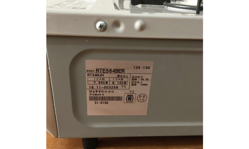 リンナイ ガステーブル 2018年製 都市ガス用 RTE564BER 右強火力